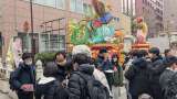 献立は 「ガーリックトースト、コーンシチュー、キャベツのハニーサラダ、みかん、牛...