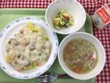 献立は 「ドリア、りんごと白菜のサラダ、スコッチブロス、牛乳」です。 今日...