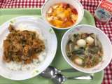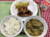 献立は 「豚キムチ丼、春雨スープ、フルーツポンチ、牛乳」です。 今日は、...