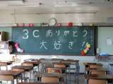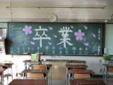 在校生と卒業生が黒板に思いを描いています。もちろん担任も・・・