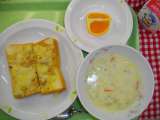 献立は 「鯖ポテトースト、クラムチャウダー、清見タンゴール、牛乳」です。 今...
