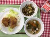 献立は 「福島ソースかつ丼、打ち豆と切り昆布の煮物、こづゆ、牛乳」です。 ...