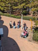 集合時間前の、 ショーの時間です。 ここに当てて 多くの生徒が 見に来ていました...