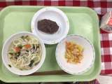 献立は 「鶏塩うどん、白菜キムチ、牡丹餅、牛乳」です。 3年生が卒業し、寂しい...