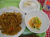 献立は 「ソース焼きそば、糸寒天と野菜の和え物、南瓜のケーキ、牛乳」です。 ...