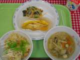 献立は 「豆乳フレンチトースト、ビーンズシチュー、ほうれん草のサラダ、ぶどうゼリ...
