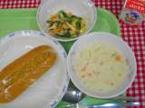 献立は 「チリビーンズドッグ、コーンチャウダー、ポパイサラダ、牛乳」です。 ...