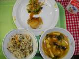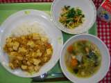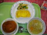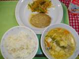 献立は 「ひよこ豆のカレーライス、こんにゃくサラダ、りんご、牛乳」です。 今...