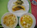 献立は 「たけのこごはん、さごしの西京焼き、和風サラダ、豆腐汁、牛乳」です。 ...