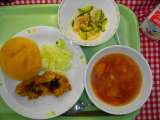 献立は 「セルフフィッシュサンド、イタリアンサラダ、トマトスープ、牛乳」です。 ...