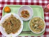 献立は 「五目焼きそば、大根の中華味、にらたまスープ、冷凍みかん、牛乳」です。 ...