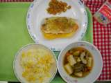 献立は 「ミルクパン、ポテトグラタン、野菜スープ、マンダリンオレンジ、牛乳」です...