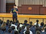 本校の全校朝礼は、月に一度、計画的に行われています。 次第は主に、講話、表彰、...