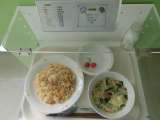 献立 キムチチャーハン・にら玉スープ・さくらんぼ・牛乳 産地 米・・・・・・茨...