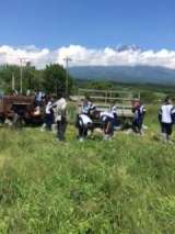 トラクターに乗って一周しました。バックには富士山がきれいに見えています。