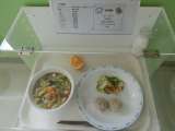 献立 カレーうどん・珍珠丸子・野菜の甘酢あえ・オレンジ・牛乳 産地 きゅうり・...