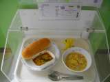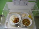 【献立】 チキンカレーライス・糸寒天と野菜のサラダ・プラム・牛乳 【主な食材の...