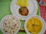 献立は 「梅わかごはん、たこぺったん、粉ふき芋、豆腐の味噌汁、牛乳」です。 ...