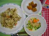 献立は 「チャーハン、きゅうりの中華漬け、春雨スープ、牛乳」です。 今の時期...