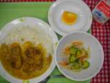 献立は 「かつカレーライス、こんにゃくサラダ、バレンシアオレンジ、牛乳」です。 ...