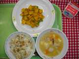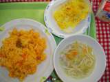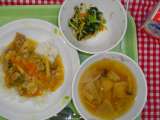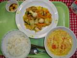 献立は 「チキンライス、ポテトのクリーム焼き、パスタ入りスープ、牛乳」です。 ...