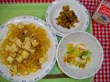 献立は 「麻婆豆腐焼きそば、中華サラダ、お豆かりんとう、牛乳」です。 今日の...