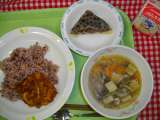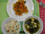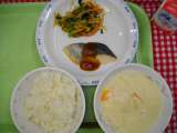 献立は 「ミルクパン、白身魚のエスカベージュ、粉ふき芋、ベーコンと野菜のスープ、...