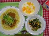 献立は 「ジャージャー麺、ひじきとツナのサラダ、フルーツヨーグルト、牛乳」です。...