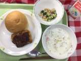 献立は 「ハムカツサンド、ビーンズサラダ、ポテトスープ、牛乳」です。 今日...