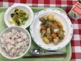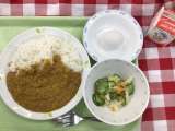 献立は 「キーマカレーライス、フレンチサラダ、茹で卵、牛乳」です。 今日の...