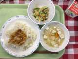献立は 「梅じゃこごはん、五目旨煮、野菜のおかかかけ、牛乳」です。 今日の...