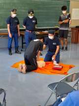 生徒の皆さんが帰ったあと、教職員は救命救急の研修会を受けました。 コロナ禍での救...