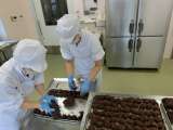 写真は工芸高校「名作いす」の模型作成です。細かい木材を丁寧に貼り付けていきます。