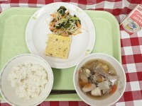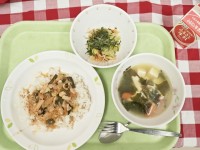 献立は「麦ごはん、切干大根の卵焼き、わかめと野菜の和え物、鶏汁、牛乳」です。今日はシンプルな和定食でしたが、ひと品ごとにそれぞれの食材の旨味が引き立ちました。*食材産地***米・・・・・宮城県豚挽肉・...