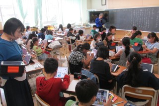 タブレットも活用して、オリジナルキャラクターやまんがを制作します。