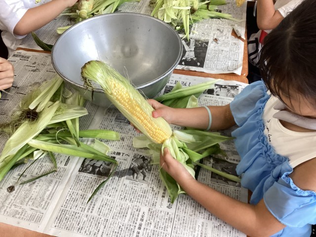 今日は2年生にとうもろこしの皮むきをしてもらいました!