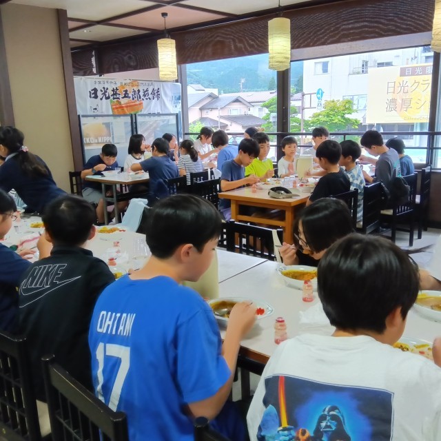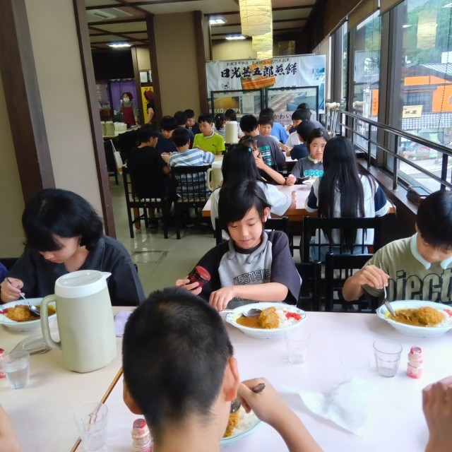 11時に、やっと日光に着きました。子ども達はお腹がペコペコで、昼食のカツカレーを勢いよく食べていました。日光は、雨が降ってきました。幾分暑さが和らいでいます。これから日光東照宮に出掛けます。