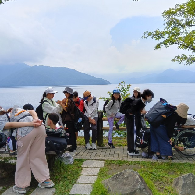 中禅寺湖周辺には、トンボがたくさん飛んでいました。子ども達は、トンボを捕まえようと必死になって追っていました。また、中禅寺湖を眺めながら、友達同士で楽しそうにおしゃべりを楽しんでいました。「また、日光来たいね」日光での様々な経験が、子ども達にとって格別の思い出になりそうです。