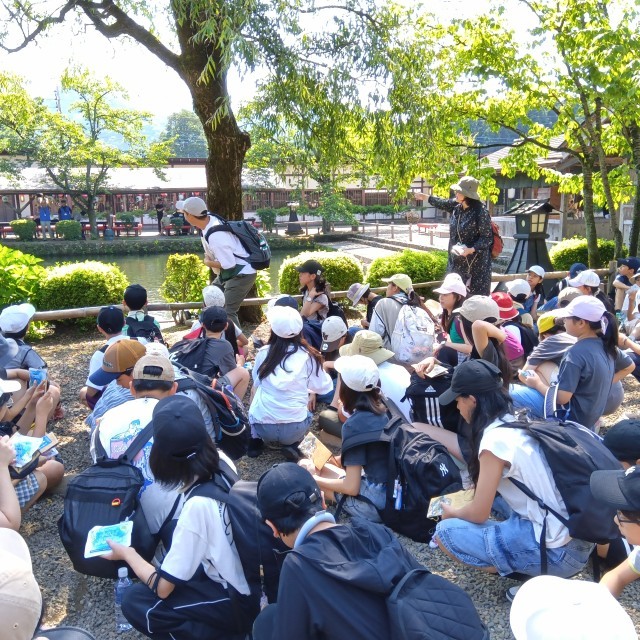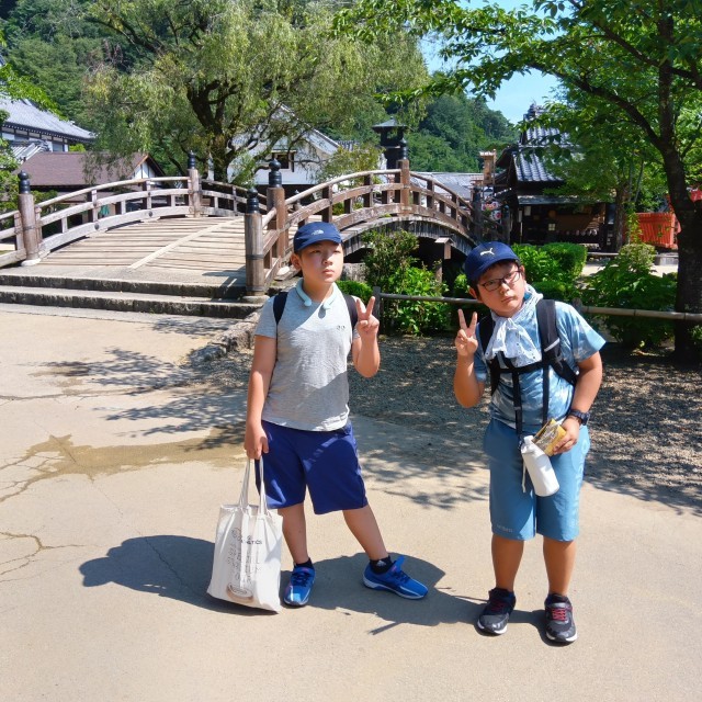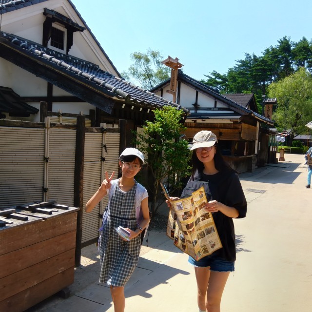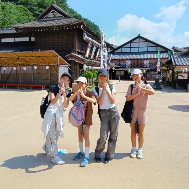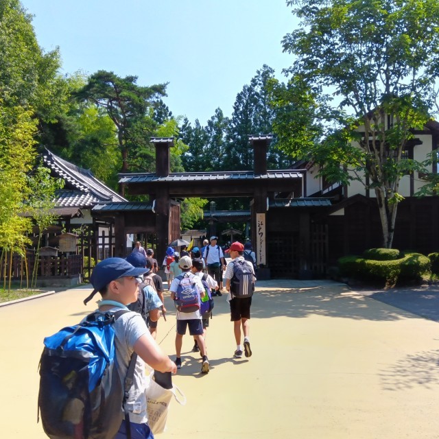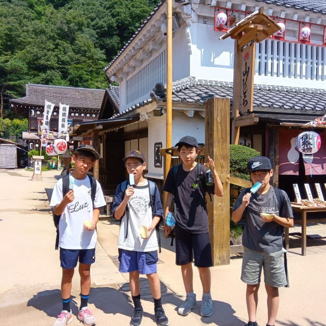 日光江戸村に到着しました。子ども達はパンフレット片手に、グループで行き先を決め、早速それぞれが行きたいところに向かいました。気温が高く、アイスやかき氷を買って涼みながら江戸村を楽しんでいます。