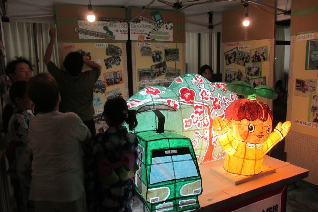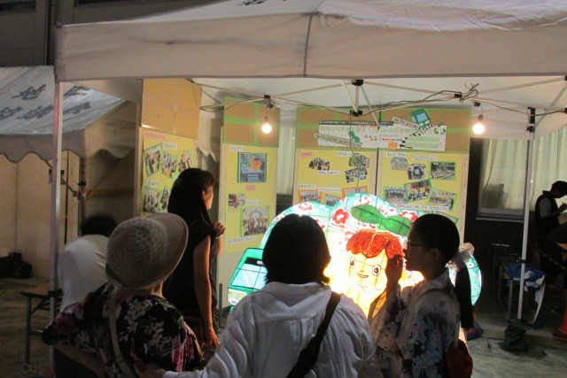「若林こどもまつり」でお披露目した、6年のねぶた張り子も展示され、多くの方が写真を撮ったり、説明を受けたりしていました。