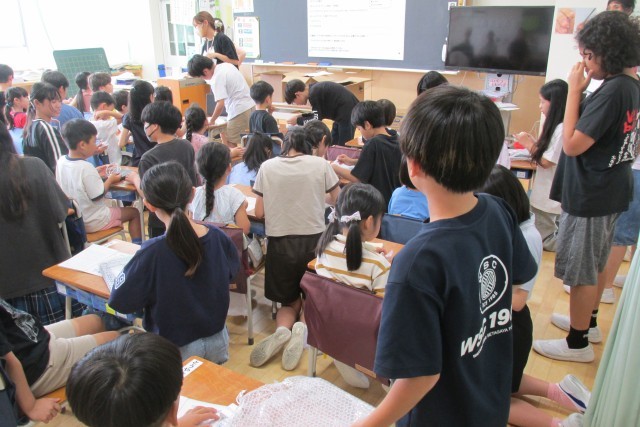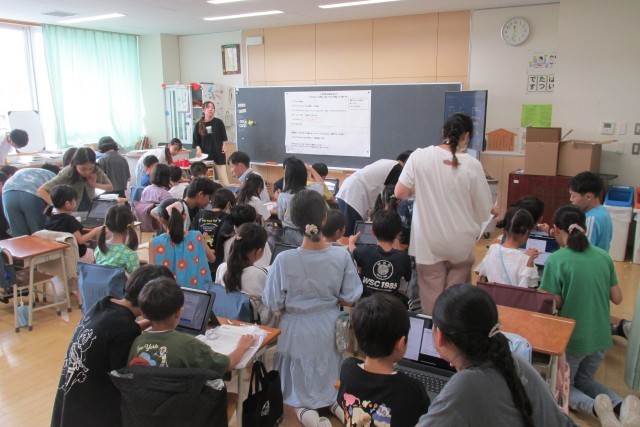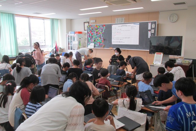 タブレットのログイン方法を、6年生の力を借りつつ学んでいます。