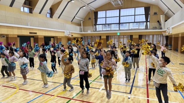 今日はポンポンを持って練習しました。