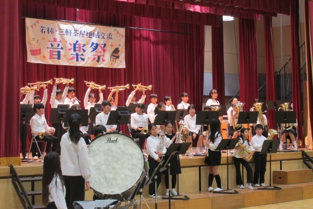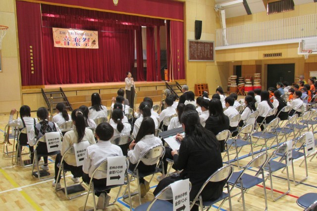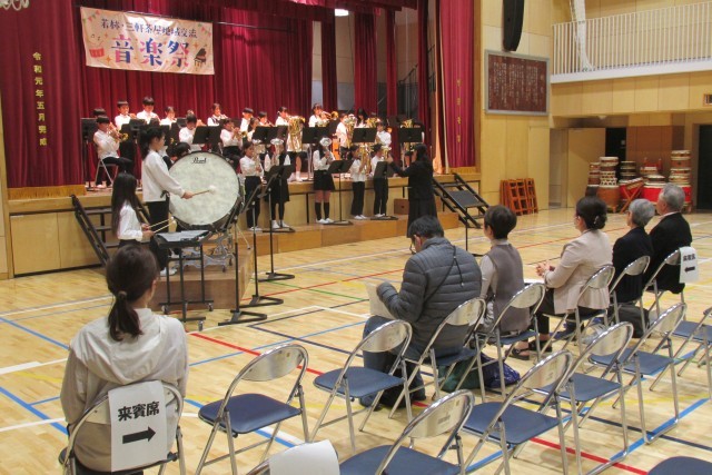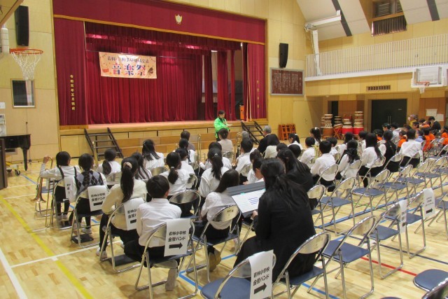 青少年若林地区委員会主催の音楽祭が本校体育館を会場に13時30分から行われ、金管バンドも出演しました。