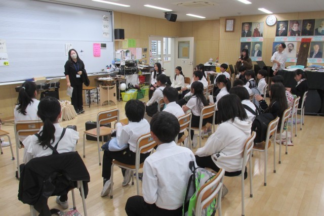 写真は順に集合時、開会式、本校金管バンドの演奏、音楽室に戻っての様子です。