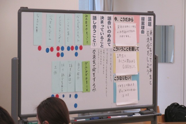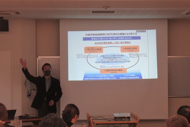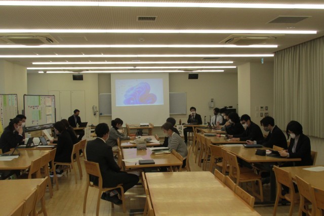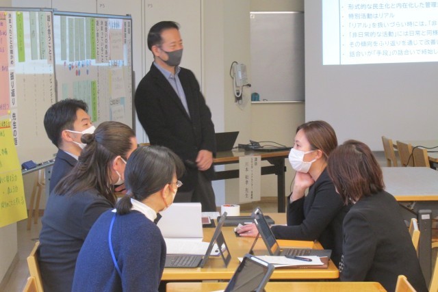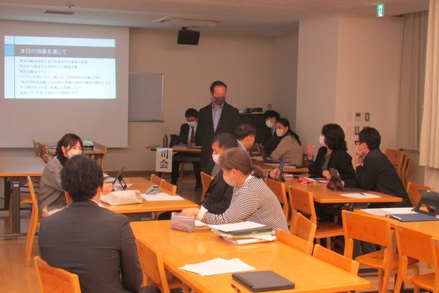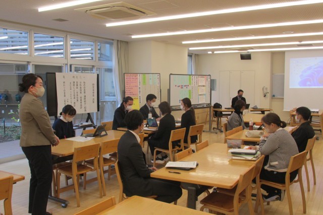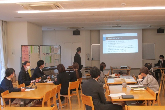 研究全体会の様子です。5年より学級活動の板書や実践について発表を行った後、講師の先生より御指導をいただきました。