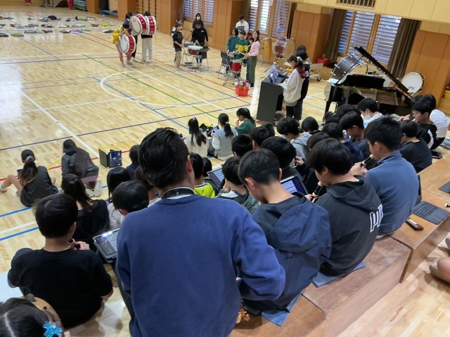 6年生の合奏曲を編曲した、3年生の音楽の先生と一緒に練習しました。編曲者から演奏のポイントを教えてもらいながら最後の仕上げをしました。