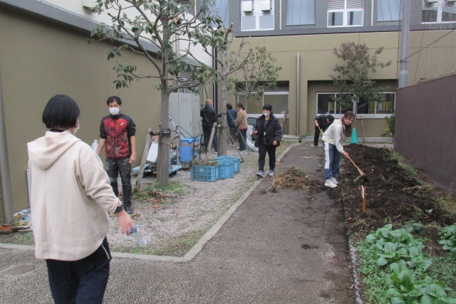 全教職員で学級園の整備を行いました。その後引き続き分担して校舎内教室等の整備を行いました。