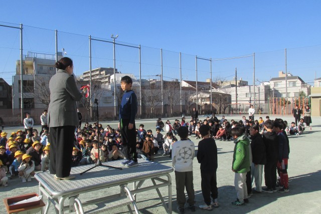 校長講話は節分にまつわるもの(自分の中によいものを取り込み、悪い心を追い出す)、先週までの「若小人権週間」の振り返り(人権週間は終わったが、これからも毎日が「人権週間」)等話しました。表彰は4件(写真は一部)。看護当番の教員より今週の生活目標(丁寧な言葉づかいをしよう)について話をしました。