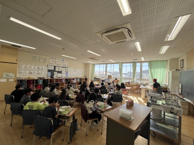 恵方を向き、とっても静かに給食を食べているクラスがありました!