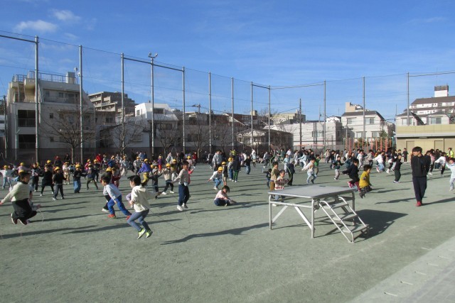 準備運動の後、1~3年生、4~6年生と分けて実施しました。